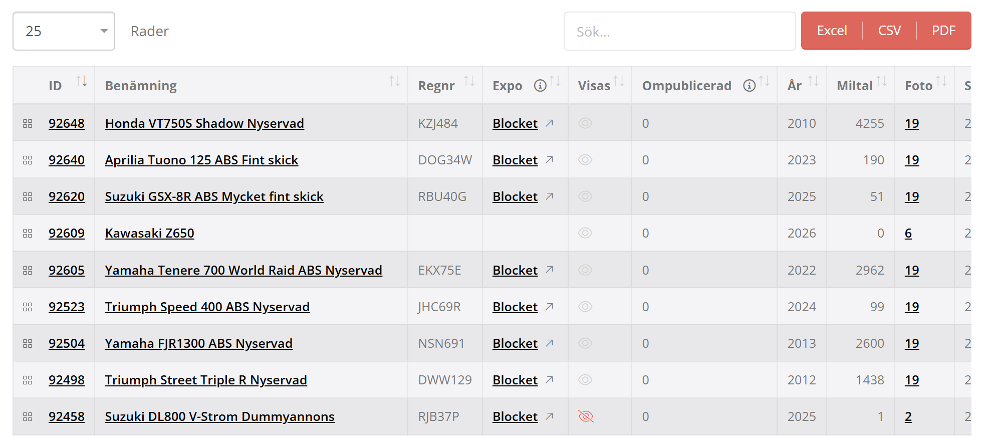På Blocket kommer du som användare se ifall annonserna är skapade på blocket. Det ser du genom varningstriangeln som visas. Tänk, varningstriangel = redigera på mcparken, ingen varningstriangel, redigera på bytbil admin