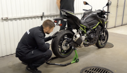 Svedea har spelat in en serie med filmer som de har sänt under året som vi har samlat ihop. Här presenteras hur man använder ett depåstöd för att lyfta bakdelen på en motorcykel som har påmonterade bobiner.
