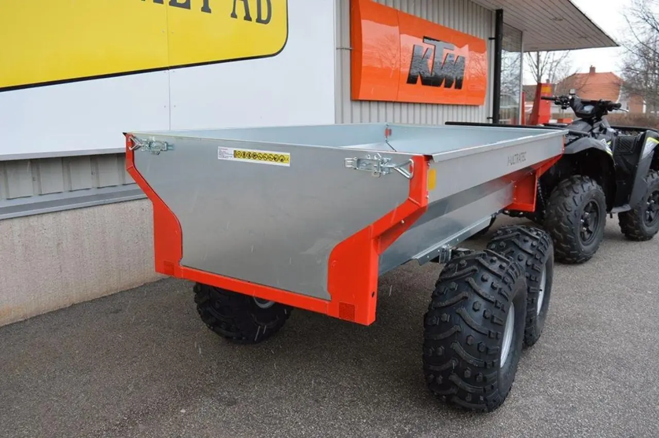 Finsktillverkad boggie vagn av hög kvalitet. Enkel tippning med hjälp av gasfjädrar. Avtagbara bak- och framväggar. Montering av kärran tillkommer med 1940 kr. Finns i flera varianter, kontakta oss för mer info eller så våra övriga annonser. Perfekt arbetsredskap till din fyrhjuling. Vi tar gärna inbyte och hjälper till med finansiering. Vi löser även hemleverans mot en tilläggskostnad, samt har ett stort sortiment tillbehör för ATV och UTV. Välkommen in till oss på MC-kompaniet! Sök Mc kompaniet Timmerkärra Timmer kärra timmervagn skogsvagn vagn släp