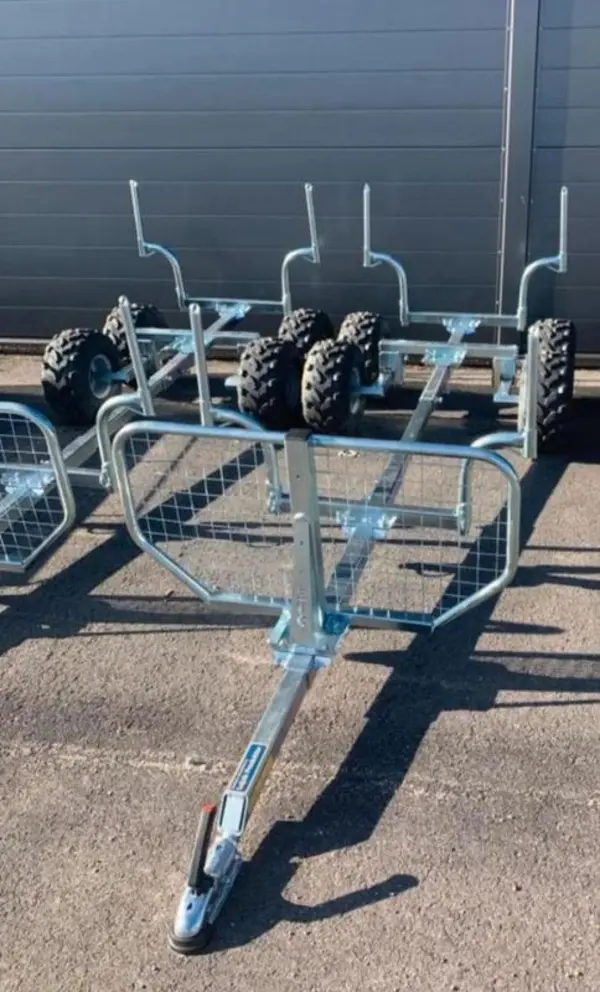 Vårt kraftfulla Skogspaket Proffs innehåller Yamaha Kodiak 700 EPS 2025 utrustad med kraftfull el-winch i fronten samt trådlös fjärrkontroll till wincharna, rejäla heltäckande hasplåtar (stål) - dessutom ingår vår stora timmervagn Leja Proffs komplett utrustad med lastförskjutningskydd. kran med uttag för el-winch .fångstarm laststödben .parkeringsstödben. skarvsladd för el-winch. lastlisa.