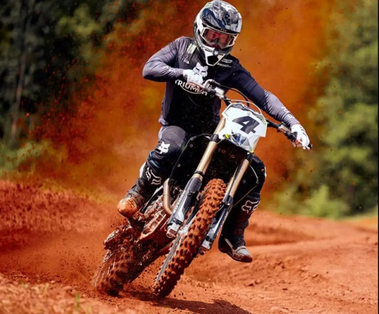 Triumph's All-New TF 450-RC Edition: introducing an all-new 450cc competition engine, and the strongest power to weight ratio in its class. Developed in close collaboration with motocross legend Ricky Carmichael, it features RC’s handpicked specs and signature components, built to deliver relentless performance and ultimate control.