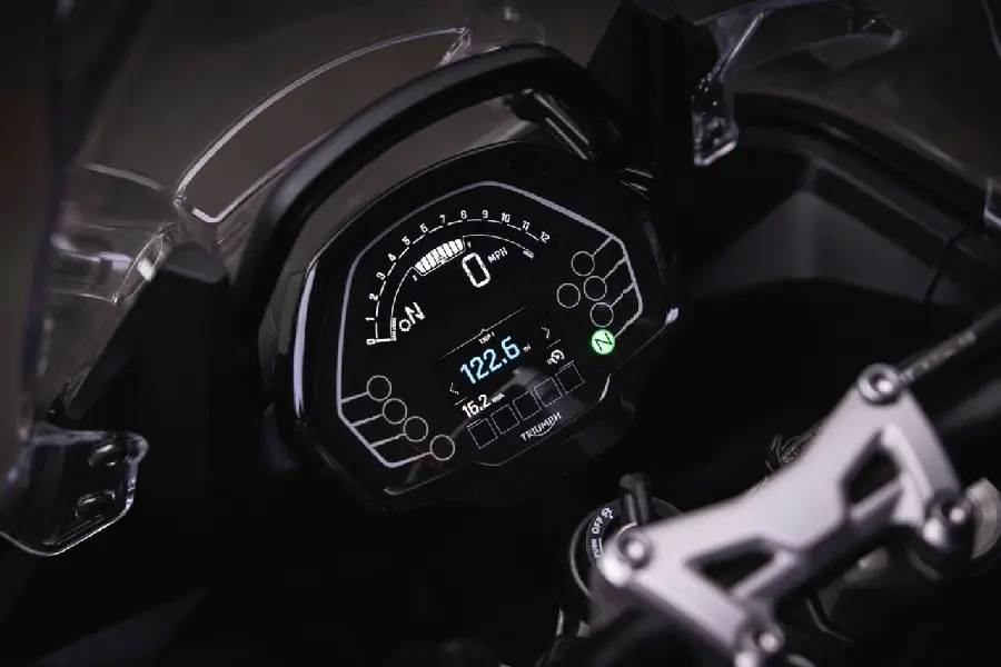 Den nya motorn sprungen ur Street Triples 765cc levererar 120hk och med kvalitetskomponenter från Showa och Brembo tror vi detta blir en kanonhoj att möta säsongen -25 på. Integrerade väskfästen finns tillgängliga för att montera väskor. Totalkapacitet uppgår till 106 liter!