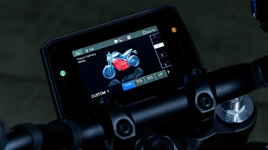Händerna är ett av människokroppens mest kraftfulla och taktila verktyg. Att växla enbart med handen istället för en kombination av fot och hand är inte bara snabbare utan kräver också mindre tänketid vilket gör det möjligt att upptäcka ett helt nytt sätt att uppleva spänningen med CP3-motorn. MT levererar snabbare och mer konsekventa kopplingsfria växlingar fingerstyrt och lättåtkomligt via ett intuitivt taktilt vippreglage som gör... att du verkligen kan utnyttja MT-09 sportiga potential fullt ut.Den här revolutionerade växlingsupplevelsen låter dig fokusera helt på MT-09 skarpa köregenskaper, bromsning och kraftfulla acceleration. Med en mer intensiv körupplevelse når samspelet mellan förare och maskin en helt ny nivå under de mest sportiga körförhållandena. Du kan också välja att förenkla växlingen ännu mer med AT en helautomatisk växellåda med två alternativ för olika körscenarier, Navigation Garmin StreetCross, Stegringskontrollsystem (LIF), Yamaha Ride Control (YRC), KYB®-framgaffl ar på 41 mm, Brembo radiell huvudbromscylinder, Lätt CF-gjuten aluminiumram, lutningskänsliga förarhjälpmedel, Acoustic Amplifier Grille, Justerbart kopplingshandtag