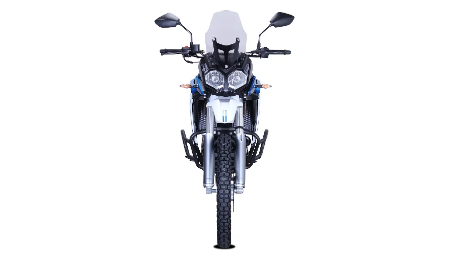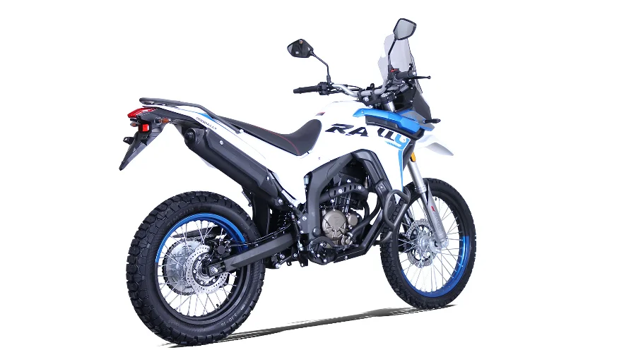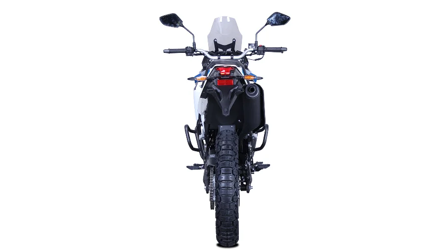 Den har en slimmad och aggressiv rally-design med en högre sitthöjd på 915 mm, vilket passar förare som gillar en upphöjd körställning med bra sikt. Med en vikt på 158 kg (våt) är den lättmanövrerad.