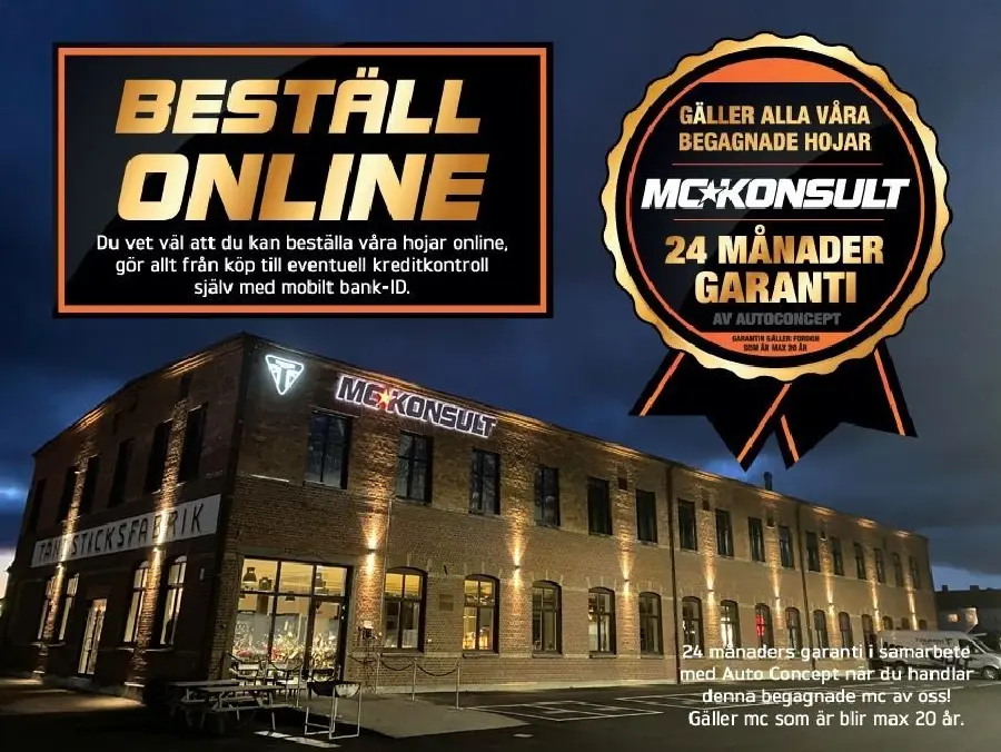 * 7 Års Easy Ride garanti på nya mc över 500cc