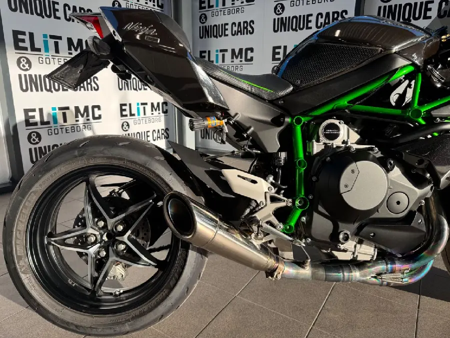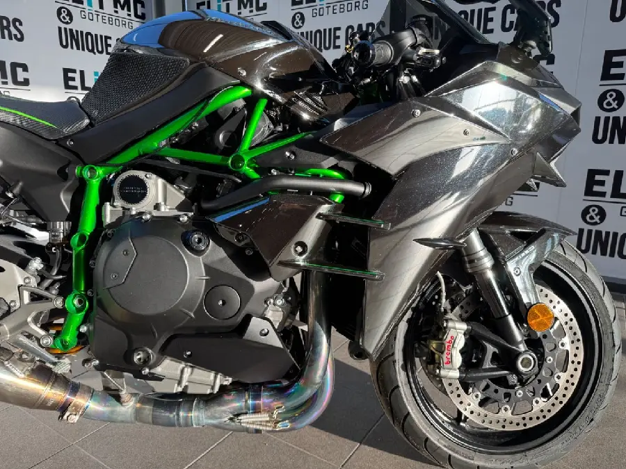 Kawasaki Ninja H2 kombinerar banprestanda med banbrytande teknologi och kraftfull design. Med sin kompressormatade motor på 998cc och 204 original hästkrafter levererar den en extrem körupplevelse. Avancerade elektroniksystem som traction control och quickshifter ger både kontroll och komfort, medan den aerodynamiska karossen förbättrar stabiliteten. Ninja H2 är den perfekta maskinen för den som vill ha det bästa på både väg och bana – en sann upplevelse av framtidens motorcyklar.