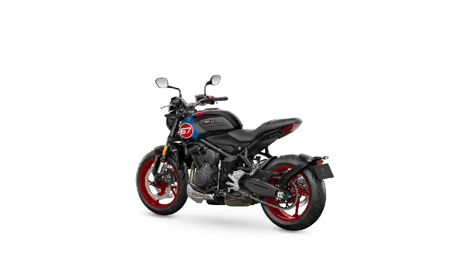 Designen är inspirerad av Triumphs legendariska tävlingshistoria, med Cobalt Blue och Diablo Red detaljer över tank, bakparti och front – ett kraftfullt visuellt uttryck som väcker uppmärksamhet. Den ikoniska ’67’-grafiken på tanken hyllar den femfaldiga Isle of Man TT-vinnaren "Slippery Sam" – ett mästerverk som förenar dåtid med nutid.