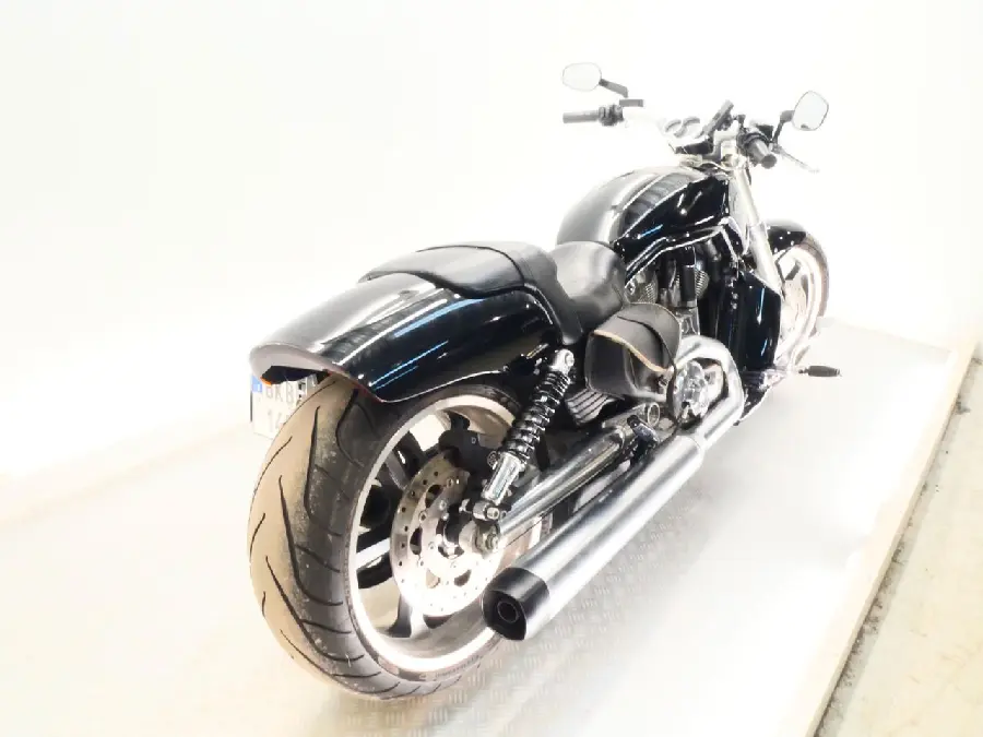 Extra framflyttade fotreglage - bra för längre förare. Sidomonterad regplåt, customspeglar. Näst sista året av V-rod.