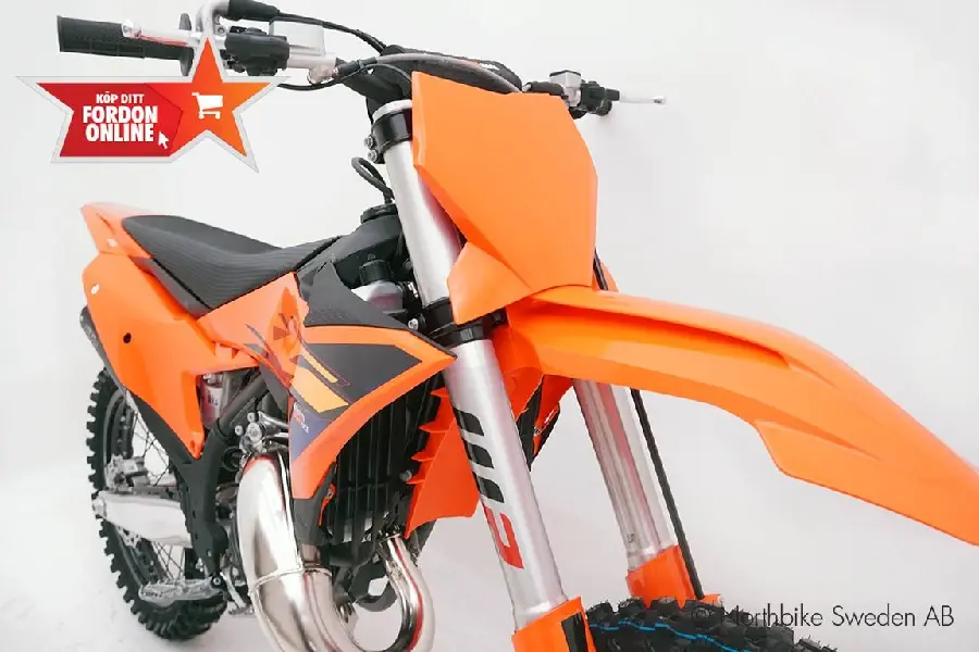 Nu har vi fått in nya KTM 125 SX 2026 i butiken! Den är definitionen av ren tvåtaktsglädje. Med elektronisk insprutning och KTM:s beprövade power valve levererar den explosiv kraft som samtidigt är jämn och lättkontrollerad – perfekt för att dominera starten och hålla tempot hela heatet igenom. Den ultralätta ramen, tillsammans med WP XACT-fjädring i toppklass, ger precision och stabilitet även när banan är som mest krävande....