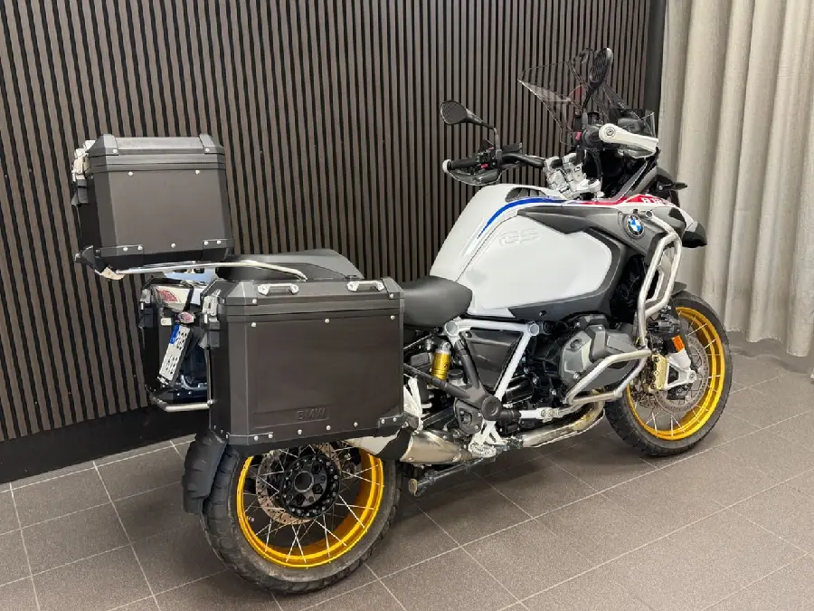 Utrustning: Style Rallye. Suspension Lowering kit. Passenger package low. Adaptive Headlights. Engine drag torque control. Dynamic ESA. Keyless Ride. Design option rear silencer. Daytime running lights. Deluxe headlight. Gearshift assistant Pro. Driving modes Pro. Comfort Package. Touring package. Dynamic package. Preparation navigation unit. Exhaust manifold chrome-plated. Heated handlebar grips. RDC. Cruise control. Additional headlight. Cruising Light. Multifunctional turn signal bulbs. Alarm system. Intelligent emergency call. Cross-spoked wheels II. Sidoväskor. Topbox. Bra att veta: Senaste... service är gjord vid 2039 mil 2025-06-23. Modellår 2023 tillverkad 2022-11. (R1250GSA. R1250GS Adventure. R1250GSA).