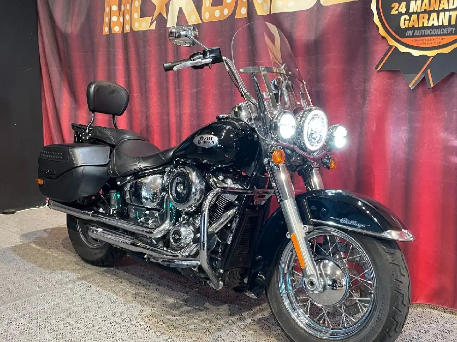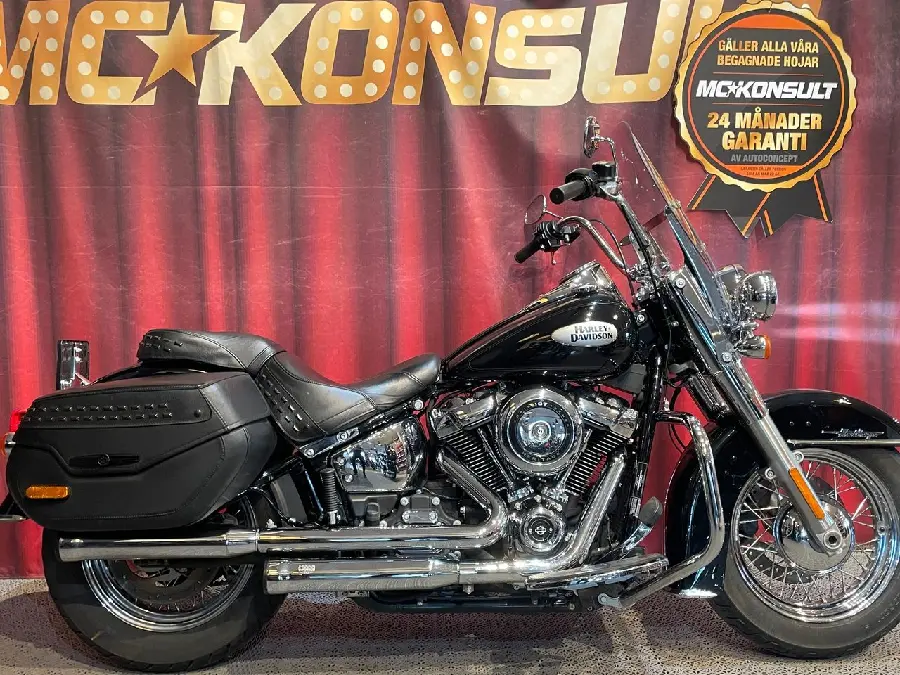 FLHC Softail Heritage Classic 107cui i ett mycket fint skick. En av två i landet med svart lackering och Chrome! Cobra Slip-On (original medföljer), Sissy med pakethållare och snabbfäste, sidoväskor, ruta, ekerhjul, extraljus med mera. Besiktigad till 2027-06-30. Vi gör årlig service på den innan leverans. Bakdäck 4 m, framdäck 5mm. ABS. Full historik.