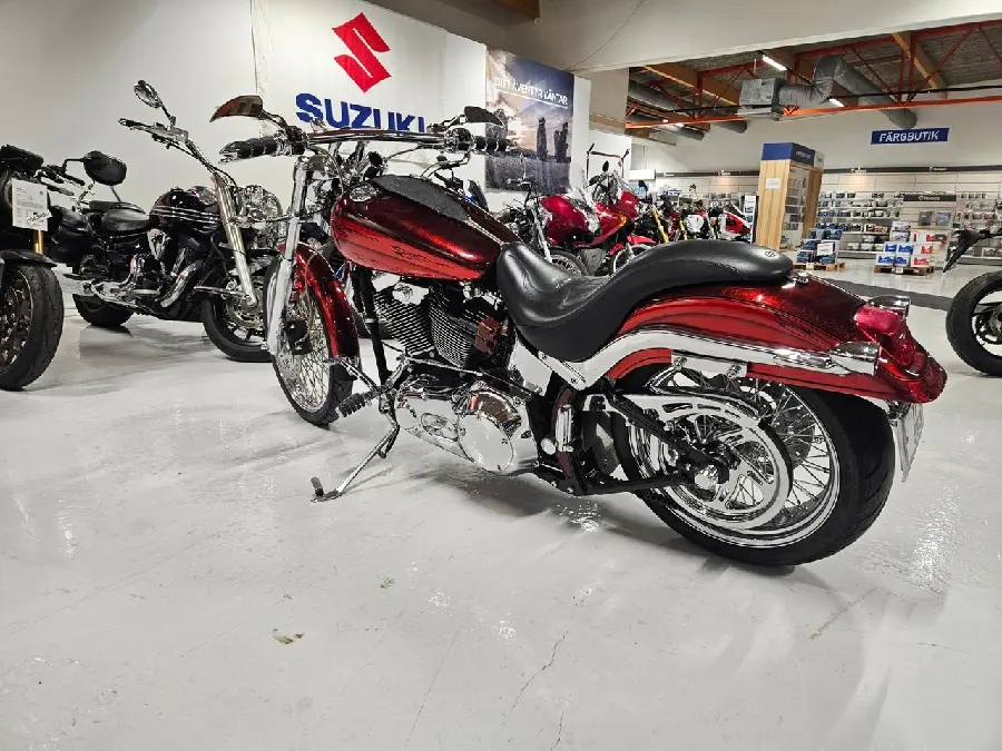 En mycket fin Harley med mycket extra på från Screaming Eagle bla cylindrar 1550, högkompkolvar 10:1, kamma, lyftare, tändsystem, Mikuni HSR 42 förgasare, extra stark startmotor med bytt startkrans och Bendrixdrev , chassi sänkt med annan dämpning, 60-ekrade hjul, Billet belthjul, alla reglage aftermarket Harley Davidsson, Kuryakin tanklock, Lejonkula väska med snabbfäste, lackerad av Quinton Stansfield, säljes åt kund, finans ordnas.