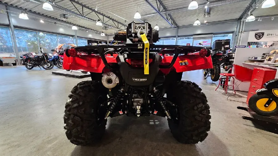 Större motor, nu på hela 518cc med mer effekt och bättre vridmoment. Kan köras helt automatiskt eller manuellt genom knapptryckningar på styret. Vill man växla upp eller ner i automatläget så är det bara att trycka på knappen. Honda TRX har dessutom motorbroms på samtliga fyra hjul om fyrhjulsdriften är inkopplad. Backen är nu el-styrd så med hjälp av en knapp på vänsterhandtaget är det bara att trycka in... den och “växla ner knappen” så går backen i oavsett vilken växel som ligger i. Den delade bakaxeln gör all transport, oavsett terräng till en behaglig färd, här finns även möjlighet till att ändra fjäderförspänning om man lastar mycket. Den automatiska diffbromsen hjälper till vid svår terräng och skulle det behövas kan man lätt koppla in den elektroniska diffspärren till framhjulen och få maximal drift på samtliga hjulen. Lätt svängd i all terräng med Hondas servostyrning.